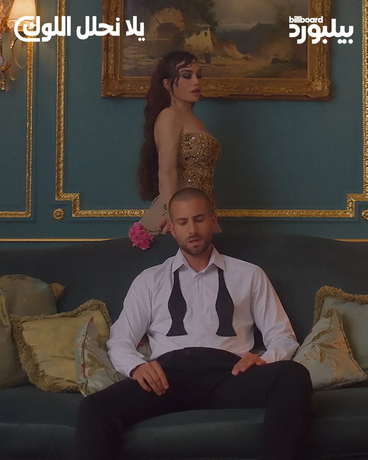 الإطلالة الثالثة حملت طابعاً متألّقاً مع فستان كورسيه ذهبي من تصميم Khaled & Marwan Couture، اختار له خليل حذاء من مجموعة أندريا وازن. الفستان الذهبي جاء بمثابة تجسيد لمفهوم الأغنية نفسها: امرأة واثقة تتوجّه نحو المستقبل بخيارات جريئة ولمسات تحتفي بالبريق والقوة.