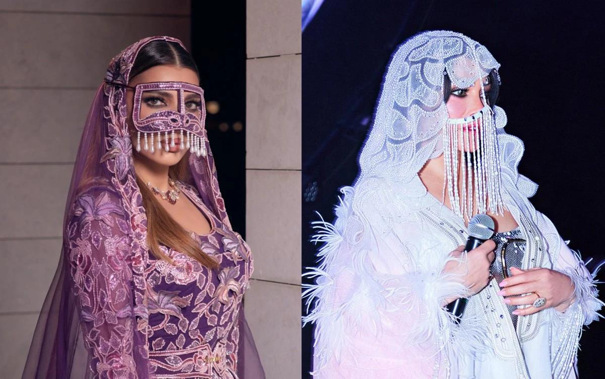 هيفاء وهبي دائمًا ما تأخذ أي قطعة تقليدية وتمنحها لمسة أنثوية طاغية وجرأة عصرية من البرقع المبتكر في حفلاتها، حيث ظهرت هيفاء ببرقع عصري شفاف أو مشبك (Net)، مما أظهر ملامح وجهها بأسلوب "السهل الممتنع ولم تلتزم هيفاء بالأسود، بل دمجت البرقع مع ألوان قوية ومكياج عيون "سموكي" حاد، مما حول البرقع من قطعة وقار إلى قطعة إغراء راقية وعصرية جدًا.